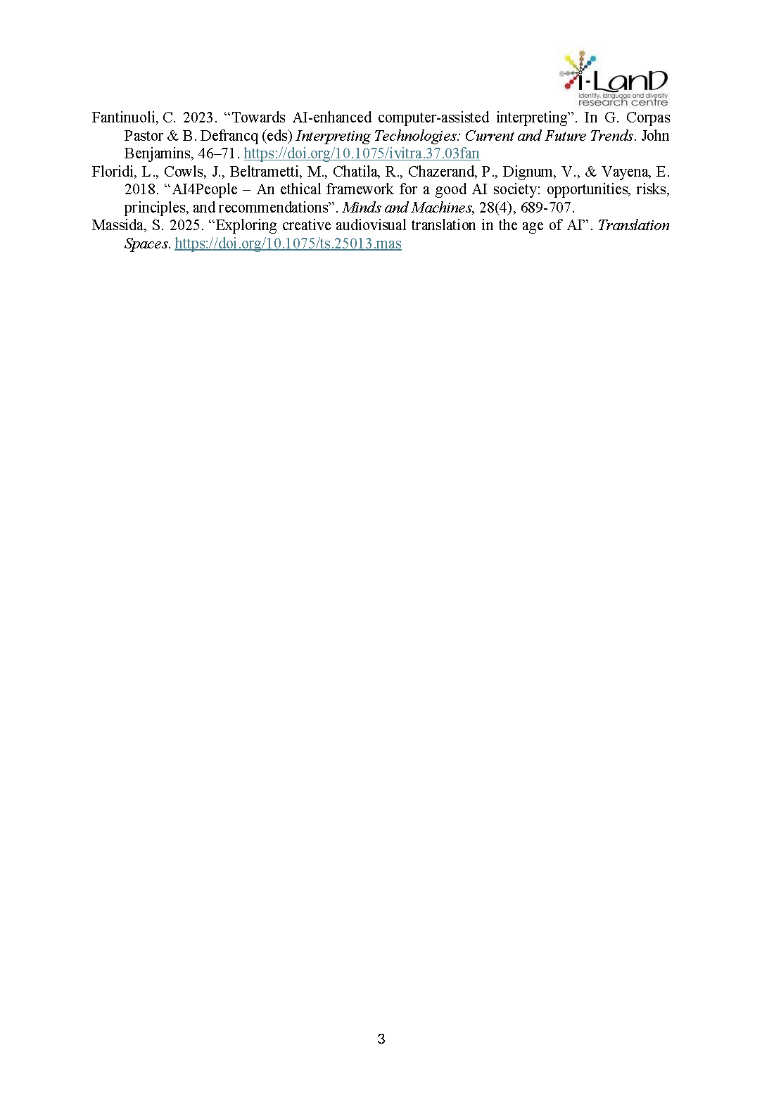 This Special Issue of the I-LanD Journal aims to foster critical reflection on translation in an era of artificial intelligence, interrogating how emerging technologies challenge traditional notions of language, authorship, and identity within translational processes. The issue will be edited by Flavia Cavaliere (University of Naples Federico II) and Jorge Díaz Cintas (University College London).
