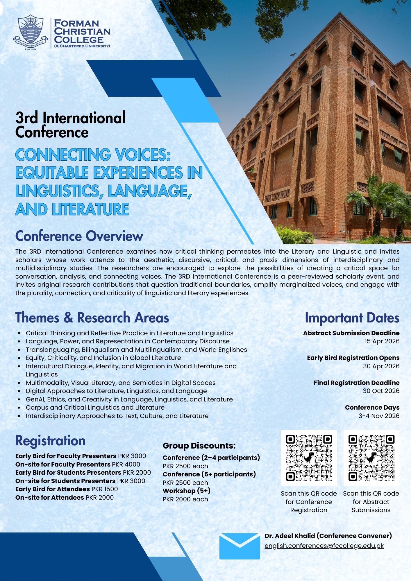 [LAP] 3RD International Conference 2026 - Connecting Voices: Equitable Experiences in Linguistics, Language, and Literature - Department of English - Forman Christian College (A Chartered University)