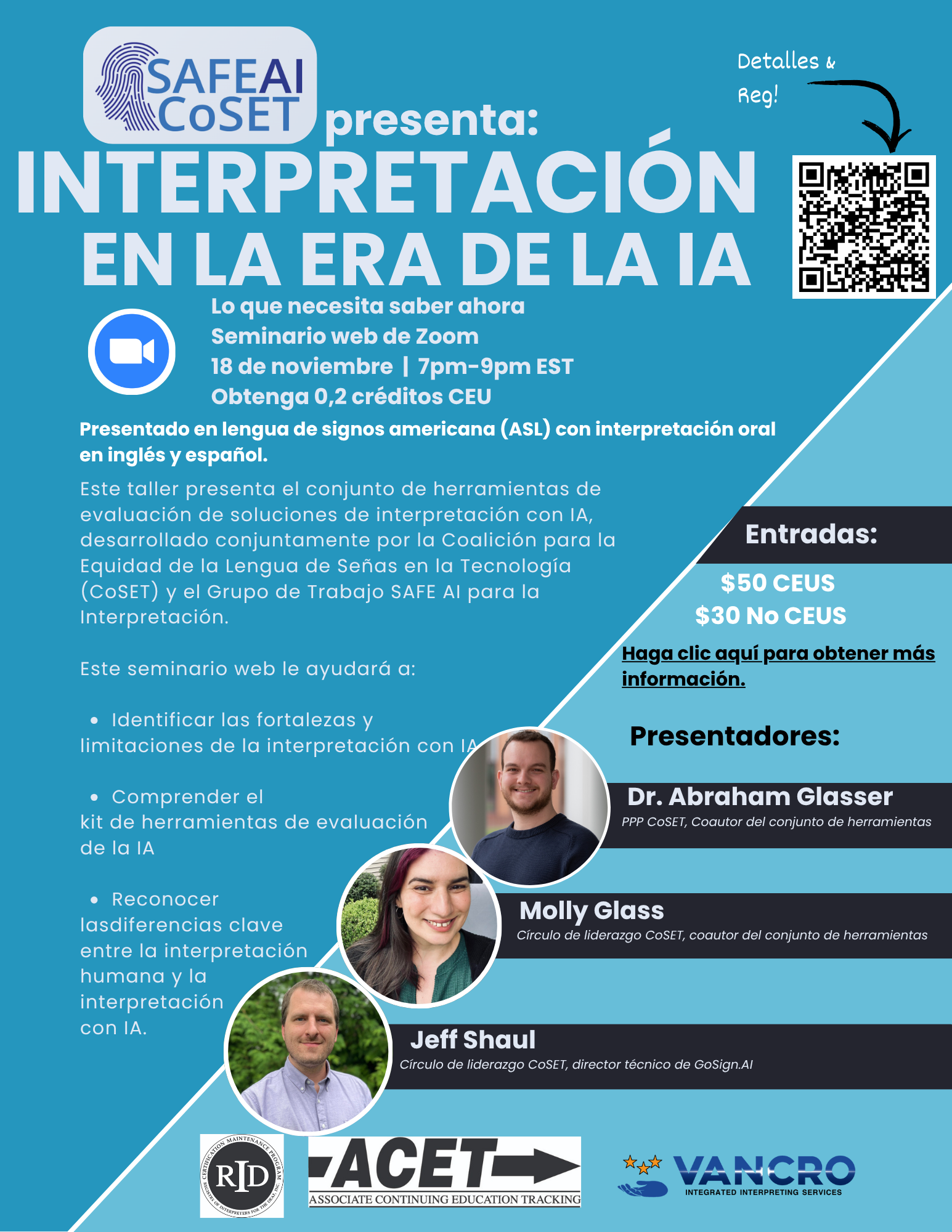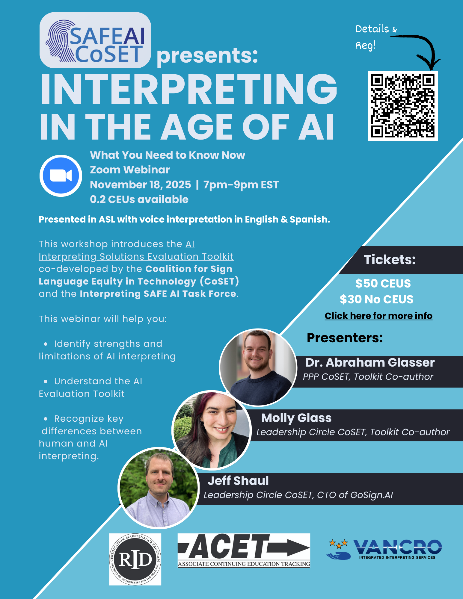 Fyi — in case it's of interest to anyone, the Coalition for Sign Language Equity in Technology (CoSET) is offering a workshop on Nov 18th about the framework for Part A of the AI Interpreting Solutions Evaluation Toolkit, which is focused on "Organization, Implementation and Management" of LLMs and NMTs designed for automated language translation in live, real-time interaction.